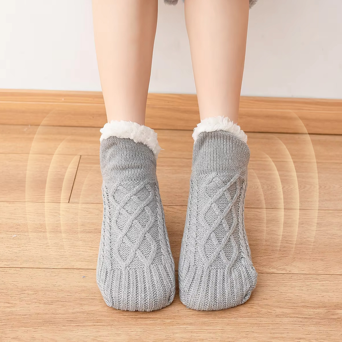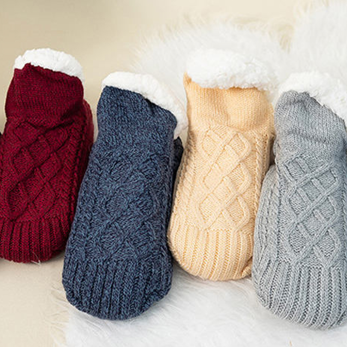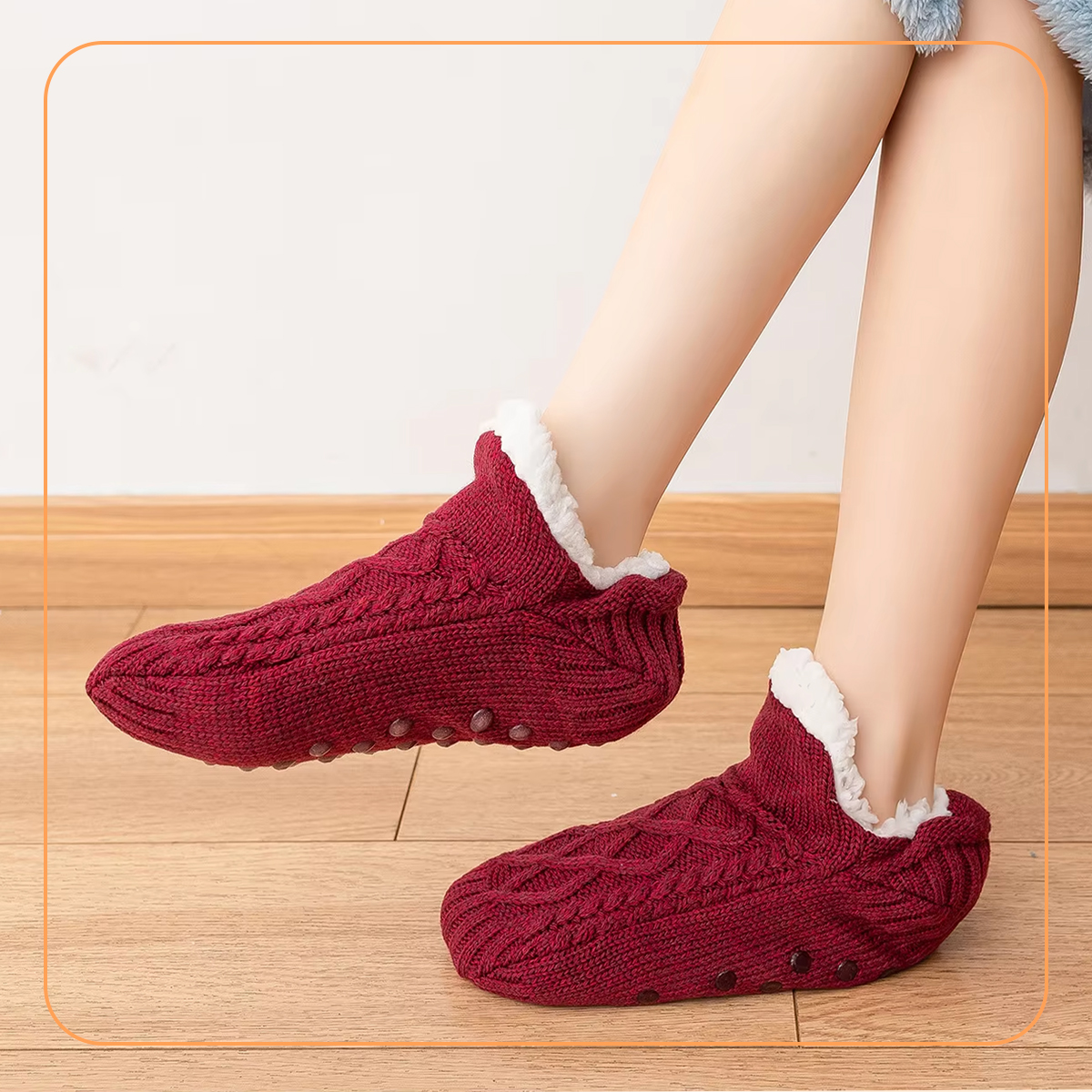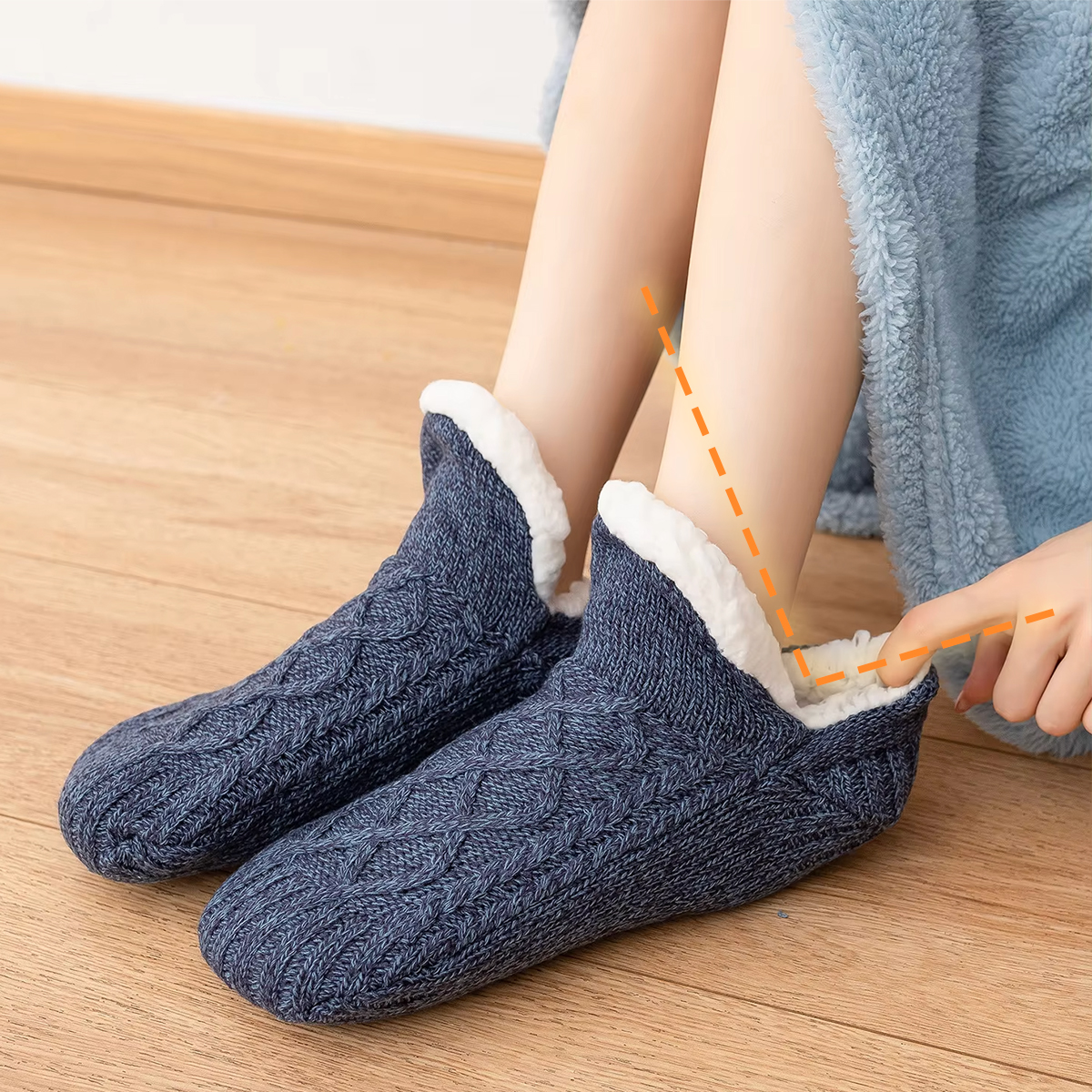 脱ぎ履きしやすいV字型の足首周り、厚くて軽やかな生地、安心安全のすべり止めで足元を快適に暖めます。